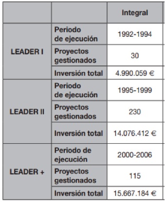 En la práctica, LEADER I (1991-1994) se implantó exclusivamente en la zona del Noroeste y se creó un solo Grupo de Acción Local (Integral). Las ayudas se aplicaron en un porcentaje muy alto a la rehabilitación de alojamientos rurales. Es-ta fase marcó el inicio de una nueva concepción de la política de desarrollo rural basada en un enfoque territorial, integrado y participativo.