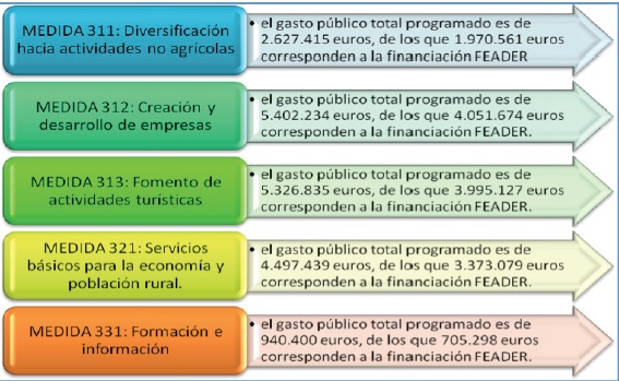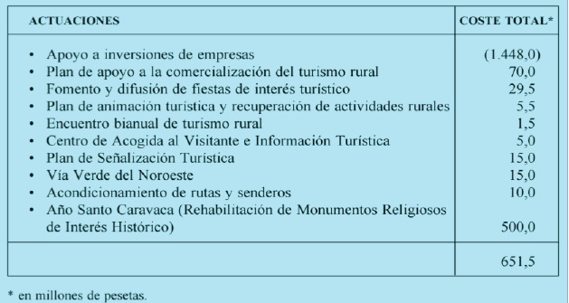 De cara al impulso de la actividad turística en este espacio rural, aspecto esencial para este artículo, la medida b se completa con todo un conjunto de actuaciones tan diversas como: