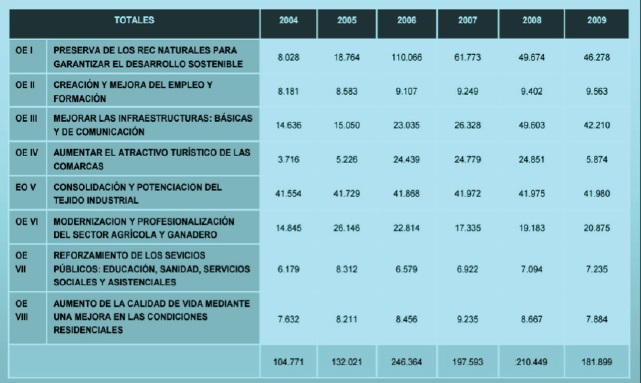El Enfoque LEADER se financia, en un 75% por Fondo Europeo de Desarrollo Rural (FEADER), en un 12,5%, por la Comunidad Autónoma de la Región de Murcia, y el 12,5% restante por Administración General del Estado, a través del Ministerio de Agricultura, Alimentación y Medio Ambiente. En el PDR de la Región de Murcia 2007-2013 se observa la importancia de estas ayudas y cómo se atiende al fomento de las actividades turísticas (figura 9).