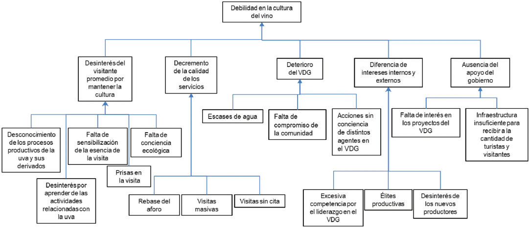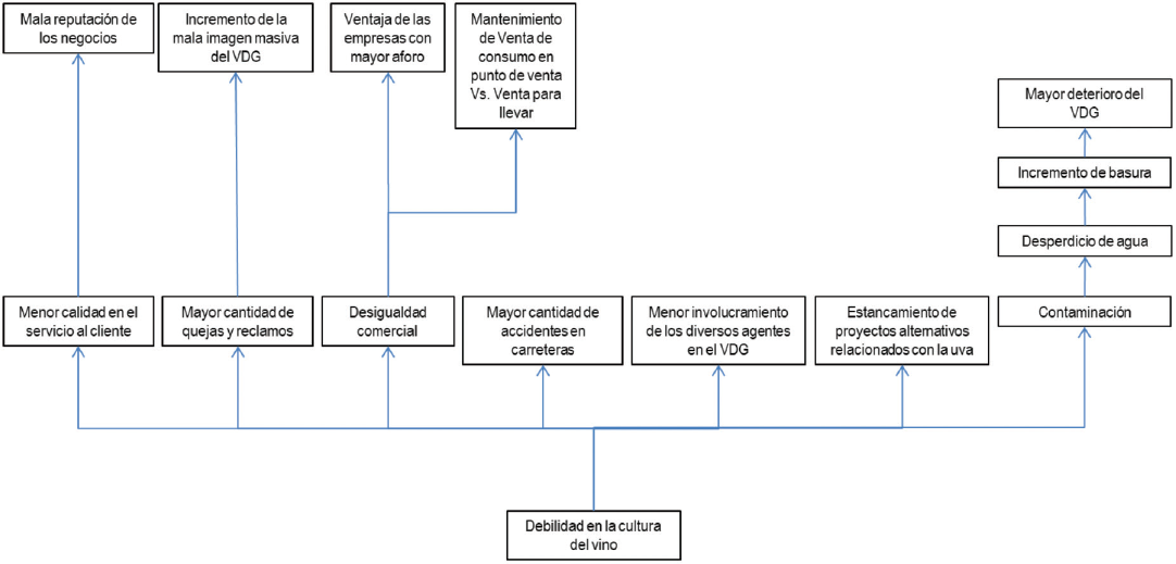 Se afirma que el fortalecimiento de la cultura del vino en el VDG no solo depende de las buenas prácticas referidas a la cata solamente, sino en complemento de diversos aspectos que se mostrarán más adelante, para ello se exhiben los diagramas de causas y efectos de las problemáticas halladas que favorecen esta aseveración.