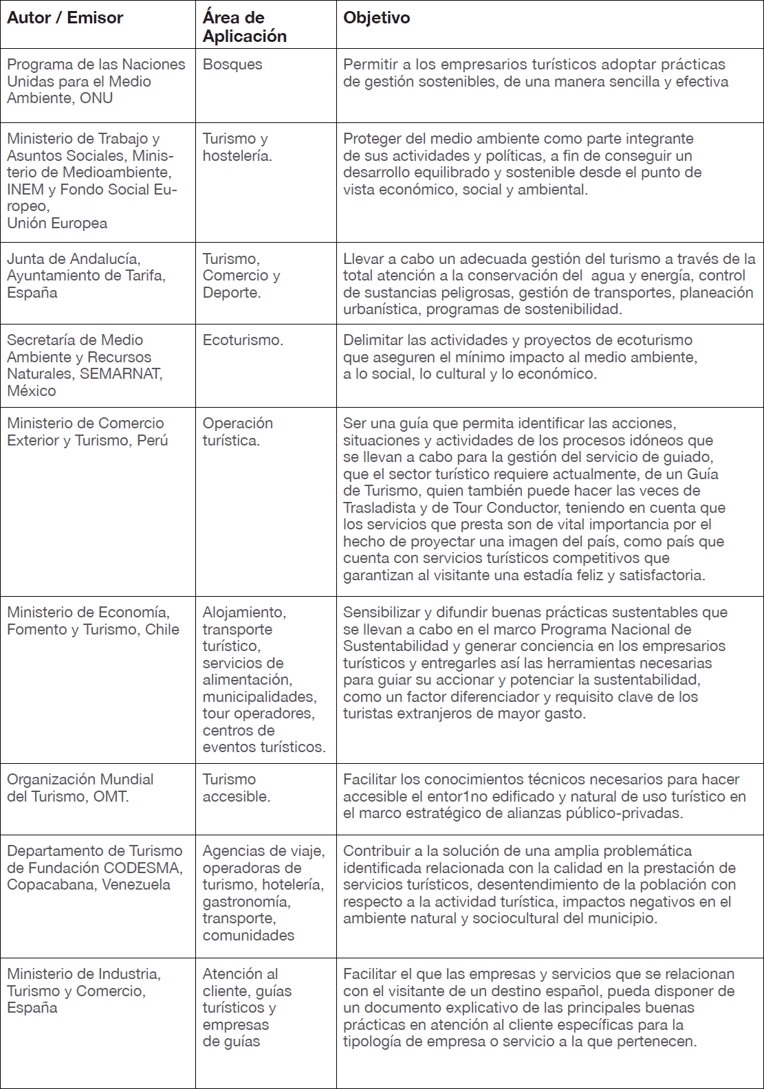 Adicionalmente, las BBPP en el turismo establecen pautas a seguir para llevar a cabo una buena gestión de los emprendimientos de turismo, mejorar la imagen de éstos ante sus clientes y su entorno, y lograr una actitud responsable ante el entorno natural, cultural y social (GMC, 2010).