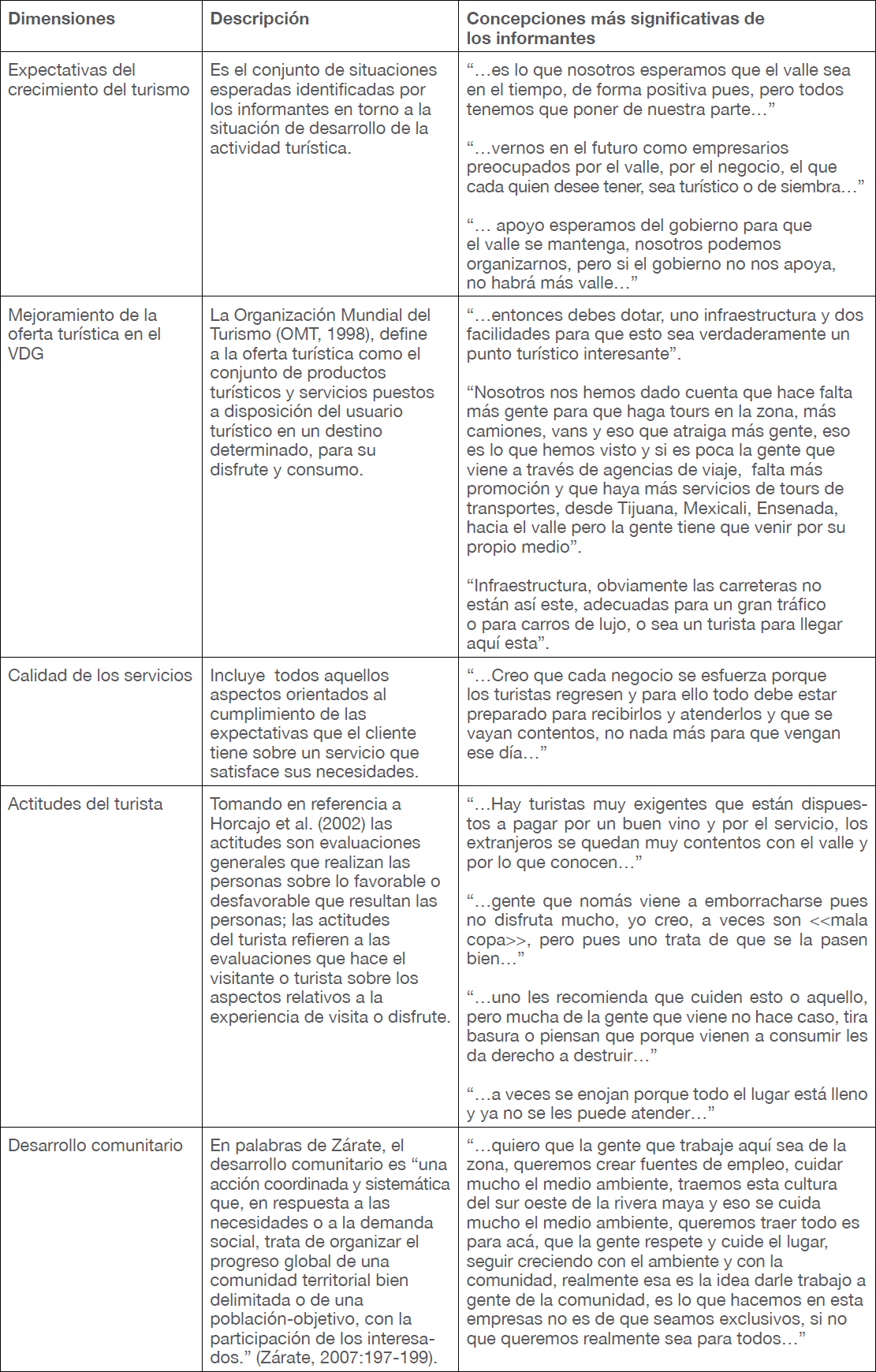 Los resultados obtenidos reflejan una particular visión de los informantes sobre los aspectos en que es necesario focalizar e intervenir con las buenas prácticas, debido a las problemáticas particulares que se identifican en la dinámica económica, industrial, de servicios y de turismo del VDG.