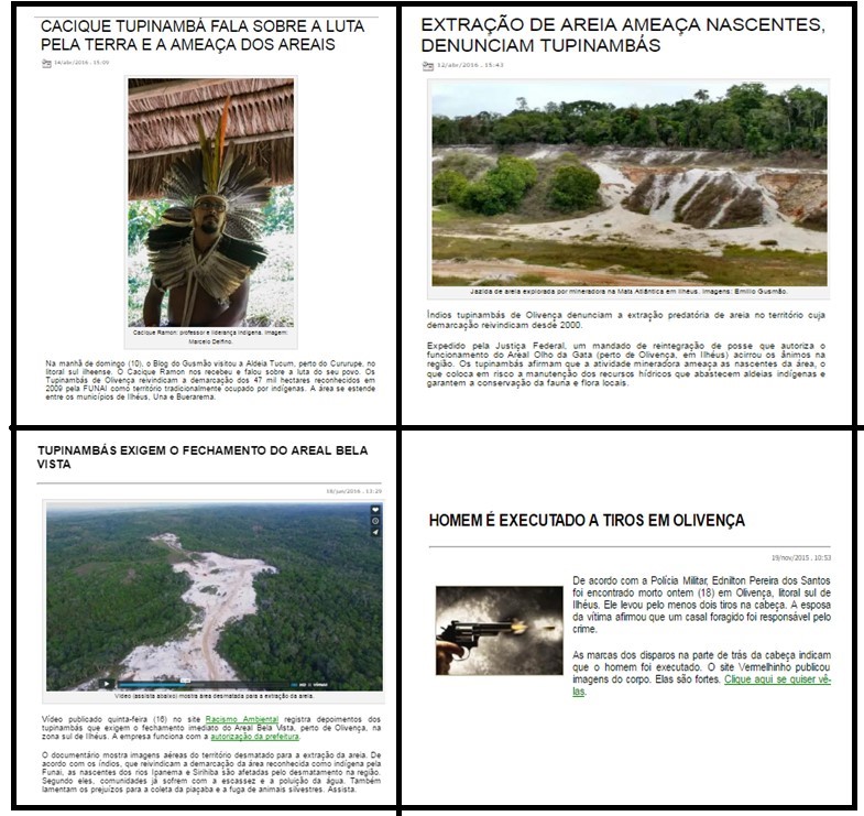 Outras questões presentes na mídia dizem respeito à denúncia dos indígenas, que vivem numa reserva em Olivença, sobre os problemas da extração de areia, como pode ser observado na Figura 2.