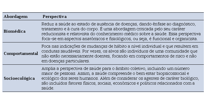 A seguir, no quadro 4, encontra-se um exemplo da perspectiva comportamental de saúde: