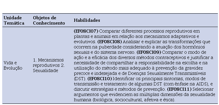 A sexualidade é mencionada na Área de Ciências da Natureza, especificamente, dentro do conteúdo de Ciências para o 8º Ano do Ensino fundamental: