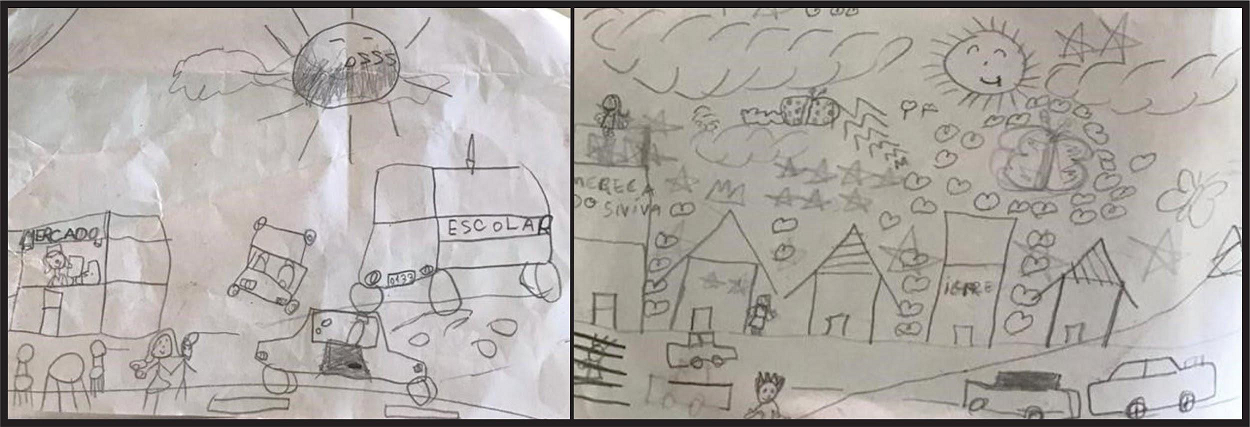 Corroboramos aqui a concepção de Santos e Silveira (2001, p. 19) ao afirmarem que “territorialidade humana pressupõe também a preocupação com o destino, a construção do futuro” já que, em suas narrativas, as crianças expressam saberes e conhecimentos sobre a cidade, criam lugares, imaginam o passado-presente-futuro do Paranoá e Itapoã, trazendo consigo, nessas produções, as pessoas da família, amigas/os, trabalhadoras/es da escola. Com a pesquisa, crianças e adultas demonstram suas autorias.