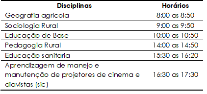 No Quadro 2 nota-se pelo elenco de disciplinas ministradas que, de acordo a campanha, o objetivo desses cursos seria inserir os profissionais da saúde nos assuntos relacionados à vida do campo para adquirirem conhecimentos que os ajudassem a prestar uma assistência mais específica ao homem do meio rural.