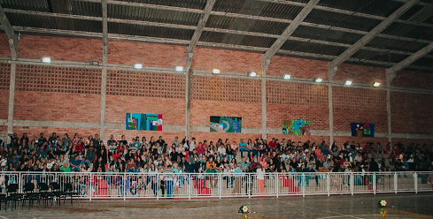 Além do mais, a ampla participação da comunidade escolar para prestigiar o evento (Figura 10) é outro fator que contribui para o sucesso do projeto e à superação dos estudantes, de acordo com o Estudante 3: “Traz a comunidade para perto da escola; traz superação para os envergonhados” (Diário reflexivo, Estudante 3, 2019). O Estudante 31 corrobora: “É uma interação legal com a comunidade; melhora a interação com a turma; [...] anima os alunos; a cada apresentação é notável a melhora de todos” (Diário reflexivo, Estudante 31, 2019). O Estudante 71 completa: “União da família com a escola; união dos colegas de classe; aprendemos coisas diferentes” (Diário reflexivo, Estudante 71, 2019).