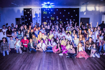 Numa intenção de contextualizar as apresentações de dança, no ano de 2017, o tema escolhido para o evento foi “A dança através dos tempos: anos 60, 70, 80, 90” (Figura 1). Sobre a escolha do tema, o Estudante 39 diz que “Uma simples ideia de relembrar o que um dia já foi sucesso se tornou o maior evento cultural da cidade” (Diário reflexivo, Estudante 39, 2019), e a Docente 3 completa: “resgatando os sucessos dos anos 60, 70, 80 e 90, causamos grande emoção nos pais dos nossos estudantes, e os estudantes puderam conhecer músicas que marcaram a geração de seus pais” (Diário reflexivo, Docente 3, 2019).