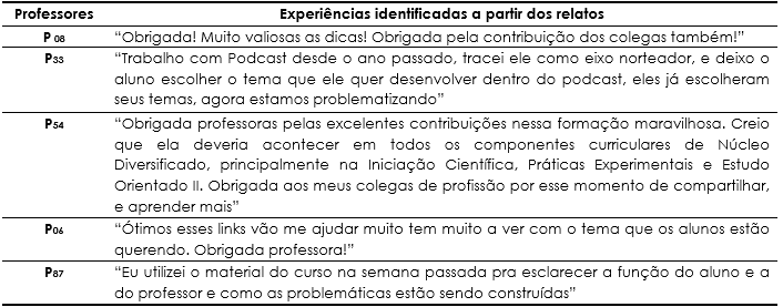 Por fim, serão apresentadas algumas experiências de sucesso na realização das atividades pedagógicas na escola, que, de acordo com os participantes, ocorreram em decorrência da participação no curso.
