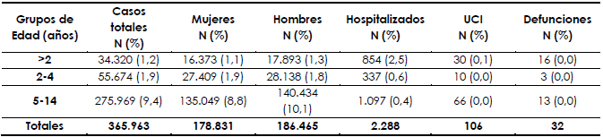 Este apartado se inicia con la presentación de datos generales de escolarización en España por Comunidades Autónomas (CCAA) según lo registrado en un informe elaborado por el Ministerio de Educación y Formación Profesional (MEYFP, 2021). Seguidamente, se proporcionan datos sobre la situación epidemiológica de la pandemia por grupos de edad y sexo a nivel nacional, con el fin de conocer el número de niños afectados por la pandemia en España hasta la actualidad. A continuación, se puede observar cómo ha afectado la pandemia a las aulas de los centros escolares a nivel nacional, ofreciendo una visión particular de la Comunidad Autónoma de CYL.