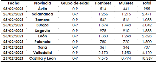 Junta de Castilla y León (JCYL). (2021). Situación epidemiológica del coronavirus (covid-19) en Castilla y León (datos a 27/02/2021). https://analisis.datosabiertos.jcyl.es/pages/coronavirus/?seccion=centros-ensenanza