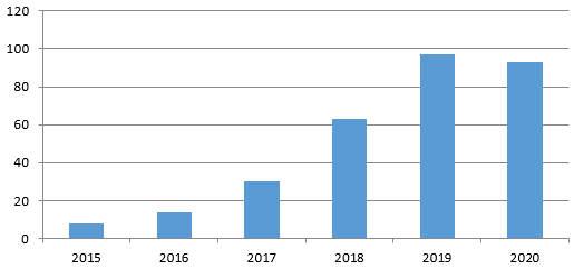 Pode-se considerar que, em 2016, a partir da publicação da Deliberação n.º 02/2016 (Paraná, 2016), houve um aumento de 75% no número de matrículas de estudantes com laudo de TDAH em relação a 2015. A curva manteve-se ascendente e em crescimento até o ano de 2019, quando, em uma comparação a 2016, constatou-se uma diferença no número dessas matrículas de 594%. Até a data da coleta de dados, cinco alunos que frequentaram o atendimento na Sala de Recursos, no ano de 2019, ainda não tinham suas matrículas efetivadas em 2020 para esse atendimento, e, em decorrência da pandemia da covid-19, as matrículas foram suspensas.
