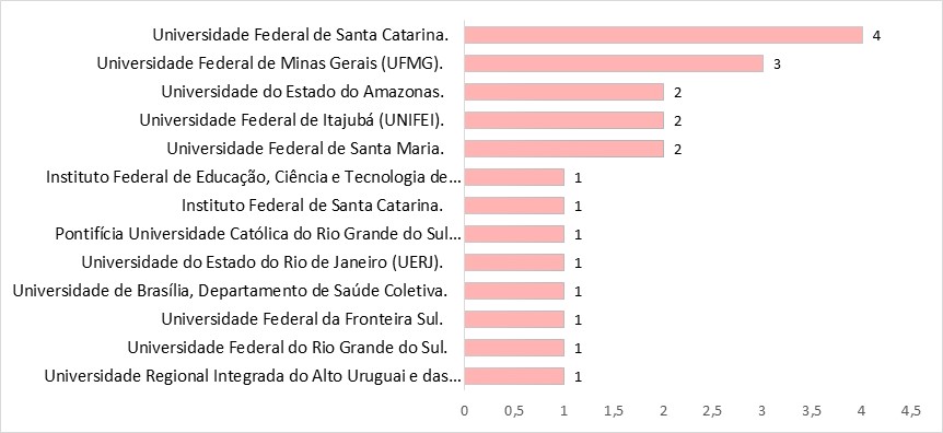 Desta forma, foi possível relacionar as principais Universidades de Ensino e Pesquisa que se permitiram estudar sobre o tema ergologia e enfermagem. Assim, observaram-se que vinte sete autores apresentados nas Bases de Dados, encontram-se inseridos, na sua maioria, em Universidades Federais e uma minoria em Universidades Particulares.