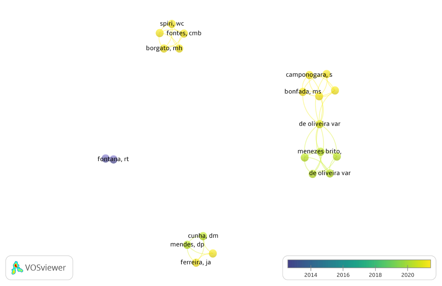 A partir do programa VOSviewer©, foi possível organizar os periódicos por datas de publicação. Dessa maneira, foram datados com maior frequência entre o período de 2019 e 2021. As pesquisas mostram o quão iniciante é a publicação sobre os temas vinculados em revistas importantes indexadas nas Bases de Dados de referência mundial por outros pesquisadores (Figura 1).