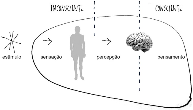 Na relação entre o indivíduo e o mundo que o rodeia, podem destacar-se dois processos essenciais: a sensação e a percepção. A “sensação ” (que acontece primeiramente e sem que intervenha alguma construção intelectual) como sendo o que o indivíduo sente como resposta a um estímulo (Dezcallar, 2012). A percepção (fenómeno posterior) é o resultado da intervenção do cérebro que a organiza e lhe dá sentido. É através deste processo sucessivo que os estímulos sensoriais se vão tornando em experiências organizadas (Figura 2).