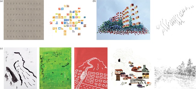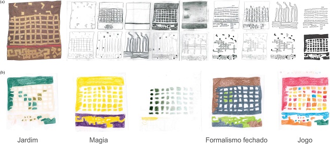 De forma muito breve passaremos a expor outros exercícios, que pretendem desinibir o inconsciente, provocar a criatividade e estimular o aprendiz a desenhar, para melhor projectar. Estes trabalhos foram realizados por alunos universitários da área de arquitectura e do design. Foram criados e orientados por Renata Gomes tentando responder às directrizes expostas neste artigo.