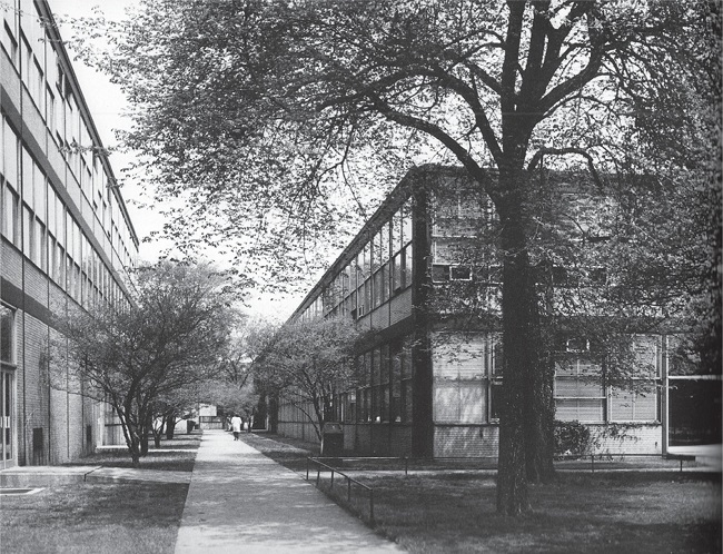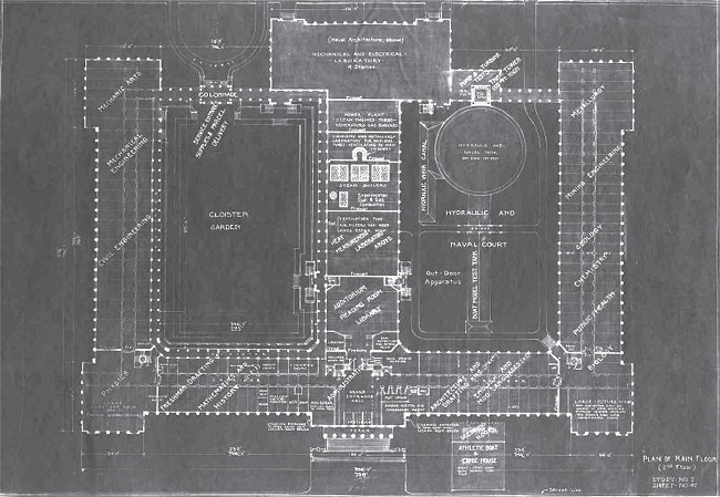 La configuración compacta de Highland Park correspondía a una tendencia general de los edificios industriales de su época y produce ya una primera contaminación en el mundo del campus universitario ejemplificada en el proyecto del nuevo campus del MIT, diseñado por el ingeniero industrial John Freeman5 en 1913.