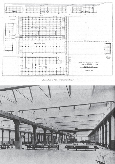 Con un esquema intermedio entre el campus disperso y el compacto, la fábrica de Buffalo presenta en su planta una significativa y estricta unidad modular (el módulo era de 20'6″x25', es decir, 6.25x7.62 metros) extendida a todos los elementos del conjunto incluyendo, aunque de manera menos explícita que en la propuesta final del IIT, los espacios no construidos (la modulación de estos espacios negativos se puede apreciar en la línea de acotación modular que une la nave de ensamblaje con el edificio exento para pruebas de los motores). La planta, publicada en un catálogo de la Trussed Concrete Steel Company de Kahn, venía catalogada como “fábrica modelo” y estaba considerada un prototipo, un manifiesto de las ideas de Albert Kahn sobre arquitectura industrial. En ella todo el trabajo de ensamblaje era horizontal y supone la primera utilización en la industria automovilística de naves de una sola planta iluminadas cenitalmente y con estructuras de gran luz. Aunque es anterior a la creación de la cadena de montaje fordista, parece la configuración ideal para alojarla. Es precursora tanto de River Rouge como de Highland Park, con su nave central de una planta con cubierta acristalada en diente de sierra. Supone el antecesor común de nuestras dos líneas evolutivas, y tanto para la arquitectura del propio Kahn como para la del Mies americano.