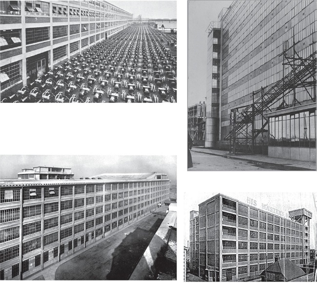 Así, podemos citar una serie de edificios que son herederos directos de la fábrica de Highland Park y continuadores al otro lado del Atlántico de la línea del “campus compacto”. Entre estos edificios destacaríamos la Fábrica Van Nelle en Rotterdam de 1928 (Brinkman, Van der Vlugt con la colaboración de Mart Stam) con sus similitudes e influencia reconocida con la fábrica americana7, la fábrica Fiat en el Lingotto de Turín construida entre los años 1916 y 1923, obra del ingeniero Giacomo Matté Trucco, que resulta una réplica invertida, en su proceso productivo, de la fábrica de Ford, o el edificio de envasado de productos húmedos para la empresa farmacéutica Boots en Beeston, de 1930-32, del ingeniero Owen Williams.