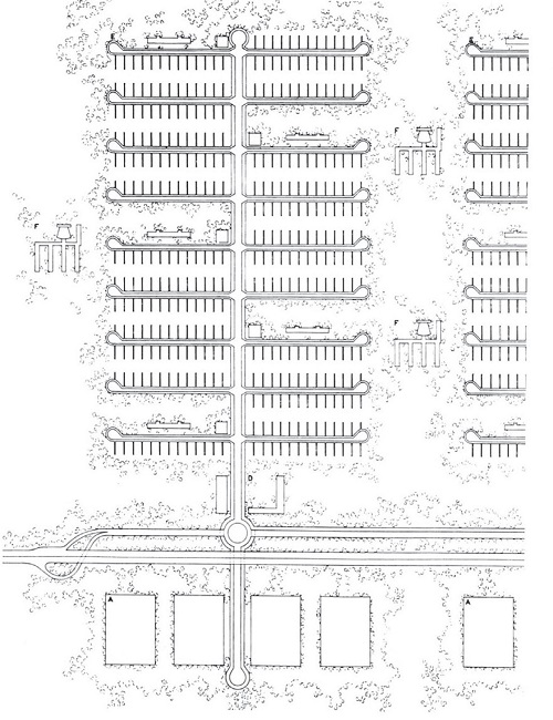 Estas experiencias de Hilberseimer en las que se combinan la industria, la residencia, los servicios, el comercio y la enseñanza, creando un nuevo paisaje urbano uniforme para todo un continente, unidas con las de Bel Geddes (Futurama y sus estudios sobre la nueva morfología de las autopistas americanas) y la Broadacre City de Wright, suponen el grueso del desurbanismo fordista americano21, la penúltima evolución del campus disperso inaugurado por Kahn en sus fábricas de los años 10 del siglo XX.