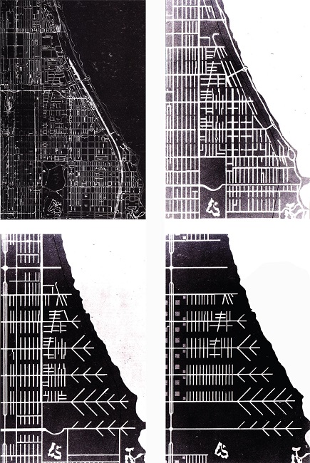La propuesta de Chicago se presenta en una serie de planos que definen las distintas fases de la transformación en el tiempo. En las primeras se produce un corte de calles pasando a ser fondos de saco, en las siguientes se ve la progresiva conversión de la trama urbana en una ciudad lineal paralela a los bordes del lago, formada por una cadena de unidades de asentamiento. En el parque lineal paralelo a las autopistas se encontrarían las industrias y los equipamientos. En esta zona quedaría el campus del IIT. En el otro lado de las unidades residenciales, un parque recorrería la costa del lago, permitiendo la comunicación de éste con las viviendas. En él se asientan bloques residenciales de gran altura, conformando un skyline visible desde el lago similar a las propuestas de Le Corbusier para Buenos Aires. Esta nueva ciudad lineal de Chicago acabaría comunicándose siguiendo el trazado de las nuevas autopistas con ciudades cercanas y con otras de gran tamaño como Detroit, Milwaukee e incluso Nueva York.