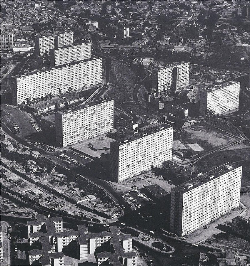 Para Villanueva, la de París viene precedida por la construcción de la residencia universitaria para la Universidad Central de Venezuela (UCV) en 1949, y por su ingente experiencia al frente de los programas públicos de vivienda social23. Desarrollos que dirigió entre los años 40 y 50, donde experimentó los nuevos modelos habitacionales de la posguerra. También tuvo la oportunidad de proyectar edificios de gran altura como el de la Zona Rental de la UCV: una torre de 50 pisos.