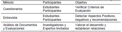 La evaluación del ejercicio se orientó por aspectos educacionales y técnicos, medidos a través de cuestionarios iniciales y finales; así como por una entrevista grupal a los participantes después de la experiencia; y por el análisis de desarrollo y resultados con un grupo de expertos ( Tabla 4 ). El cuestionario pretendía fundamentalmente conciliar aspectos y estaba integrado por tres partes ( Tabla 5 ). La primera parte se refiere a consultar el impacto de la formación y del ejercicio en particular en los ejes del modelo educativo de la universidad, que propende al compromiso, la diversidad y la excelencia; la segunda parte del cuestionario revisa en ambas instancias la percepción de conocimientos disciplinares y sobre BIM; la tercera pregunta sobre la estimación de algunos indicadores de producción. Esos aspectos fueron definidos de acuerdo a la literatura en el área, considerando los eventuales beneficios de BIM en reducción de tiempo de proyecto, cantidad de documentos, interferencias de especialidades, consultas de información, análisis de proyectos, etc. Los documentos producidos por los estudiantes fueron analizados posteriormente por un grupo de expertos del área (cuatro profesores universitarios de distintas asignaturas; proyectos de arquitectura, ingeniería estructural, ingeniería en construcción y diseño energético-ambiental), y la entrevista grupal fue conducida por los investigadores con un asistente de registro, y desarrollada según los criterios encuestados, culminando con una discusión abierta de aspectos positivos, negativos y recomendaciones para experiencias similares.