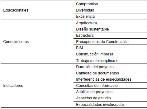 Sin embargo, el desarrollo y formación de las distintas profesiones que participan en un proyecto de edificación se estructuran por separado, se orientan a contenidos específicos y se relacionan por sus resultados finales ( 13 ), desarrollando parcialmente experiencias de trabajo grupal, y muy escasamente trabajos multidisciplinarios. Así mismo, en los últimos años se ha integrado progresivamente el aprendizaje y aplicación de programas de diseño digital; incorporando lentamente sistemas de información de edificios (BIM), aunque dedicados a modelación básica. De un modo similar, en la enseñanza de arquitectura se aplica formación orientada a proyectos, pero usualmente definida y evaluada por condiciones establecidas por la misma asignatura, sin participación o consideración de otros aspectos ( 14 ). En la formación de los otros profesionales de la edificación (ingenieros en construcción, civiles o mecánicos), rara vez se elaboran diseños, y normalmente se resuelven o planifican características a partir de proyectos prediseñados ( 15 ).