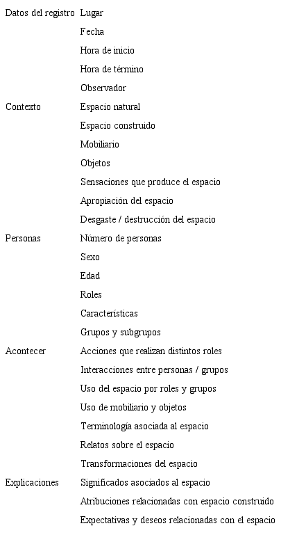 Cada observación debería registrar datos sobre la ubicación, contexto y su acontecer ( tabla 2).
