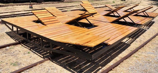 - a design with a special focus on the history of the space, with the reuse and transformation of industrial heritage, such as the wagons.