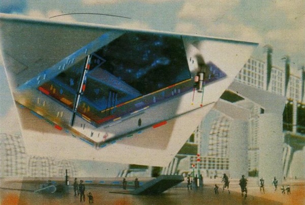 En la propuesta del arquitecto Jean Nouvel para el Pabellón de Francia en la exposición Universal de Sevilla (1989), las dos imágenes contrapuestas de sí mismo conforman ese entrecruzarse de los reflejos, según afirma Vattimo, de la imagen-espejo del presente, en la parte superior, y de aquella que evoca a la cultura francesa, expuesta bajo un plano de vidrio transitable. El resultado es que el pabellón es más que la suma de lo que aparentemente se observa entre esas dos imágenes que lo delimitan. Entre ellas se consuma la ilusión de que lo visible no concluye en las superficies que soportan esas imágenes, sino en el traslado de los planos físicos que lo definen hacia “un espacio que sería la prolongación mental de lo que se ve” (7, p.14). La visión de este espacio produce esa sensación de mutación continua y ubicuidad asociada a esa doble función de las imágenes: comprimir la distancia a la que se encuentra verdaderamente un evento pero, al mismo tiempo, amplificar referencias al evocar acontecimientos o lugares lejanos ( figura 2).
