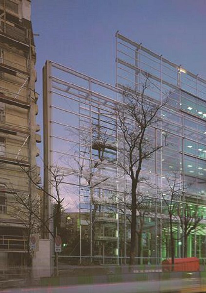 Este efecto se debe, en gran medida, a que los planos de la fachada hacia la avenida Raspail, dos en la línea de deslinde del sitio y el otro, del edificio propiamente tal, se fusionan produciendo un aparente movimiento de avance y retroceso de la fachada. Un elemento clave para producir esa transparencia evanescente del edifico es la doble cualidad material del vidrio, es tanto un plano de transparencia absoluta como una superficie receptora de imágenes reflejadas. La profundidad de la fachada del edificio se torna incierta, porque las referencias visuales que hacen posible fijar la posición de los objetos reales, como el árbol en el antejardín, ubicado entre los dos planos de vidrio, quedan integrados con las imágenes reflejadas del cielo y las nubes, el perfil de la ciudad de París y las de la avenida, los coches, el mobiliario urbano y el frente edificado.