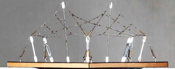 Os modelos físicos compostos por correntes e pesos eram adequados para simular as condições das estruturas em arco e casca, em geral, constituídas por concreto ou pedras. No entanto, tais modelos não conseguiam mensurar os efeitos do tensionamento das estruturas retesadas.