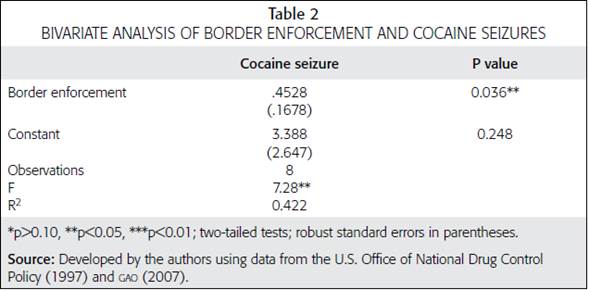 The results, provided in the tables below, reveal some interesting findings regarding the effect of border enforcement on the illegal drug market.