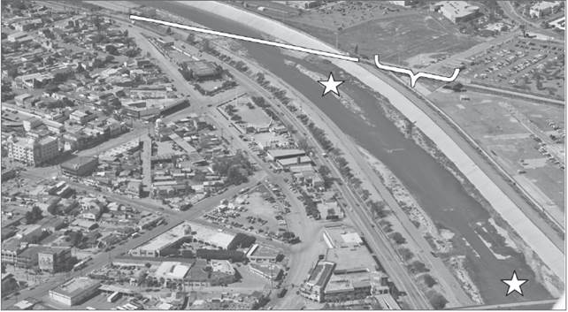 La canalización del río Tijuana fue el proyecto urbano más ambicioso del siglo XX y la primera de sus tres etapas inició en los años setenta. El objetivo fue canalizar el río desde la presa Abelardo Rodríguez hasta la línea fronteriza con Estados Unidos. Históricamente el lecho de este río ha sido un lugar de asentamientos precarios que han sido desalojados en varios momentos. Primero, fue sede de un grupo de deportados en la época de la Gran depresión estadunidense en la tercera década del siglo XX (Piñera, 1983: 235); luego, lugar de asentamiento de población inmigrante en el periodo de urbanización intensa de la ciudad en los setenta, también del siglo XX (Valenzuela, 1991: 48-49). En ambos casos, estas personas fueron desalojadas y reubicadas. El argumento para el segundo desalojo fue que se llevaría a cabo la canalización matizado con un discurso sobre la imagen de limpieza de la ciudad (Valenzuela, 1991); sin embargo, la obra escasamente posee agua, por lo que constituye un espacio de circulación y asentamiento de personas.
