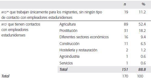 Los AFCF que reciben un salario o compensación de las organizaciones más complejas de las que forman parte no tienen un contacto directo con los empleadores; pero muchas de estas redes reciben dinero por suministrar migrantes indocumentados a agencias de colocación, a organizaciones de productores y a empleadores de diversos sectores. Como señalaba Jaime: “pagan los patrones porque son mano de obra de trabajo de ellos; por eso los patrones pagan para que les lleven trabajadores”.