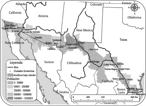 Scott, Christopher et al., 2008, Building Shared Vision: Assessment of Transboundary Aquifers along the United States - Mexico Border, International Conference on Water Scarcity, Global Changes, and Groundwater: Management Responses, Irvine, University of California, Irvine y usgs.