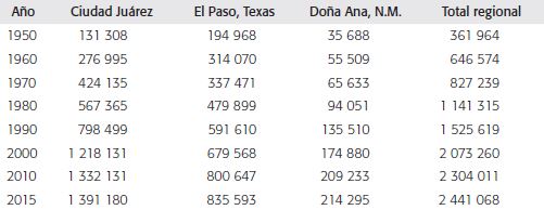 Históricamente, el condado de Doña Ana en el sur de Nuevo México, junto con El Paso, se han dedicado a la agricultura y su fuente de abasto más importante son las aguas subterráneas transfronterizas. Los estudios indican que las primeras perforaciones para extraer agua del Bolsón del Hueco datan del año de 1892 para El Paso (con un pozo de catorce metros de profundidad), y del año de 1912 en el caso de Ciudad Juárez (Turner, Hamlyn e Ibáñez, 2003; Luján, Garza y Quevedo, 2005). El Paso inició una búsqueda activa de otras fuentes de abastecimiento hídrico desde 1960, en función de su crecimiento demográfico y urbano (véase cuadro 1), por medio del aprovechamiento de los SAT Bolsón del Hueco y Bolsón de la Mesilla.