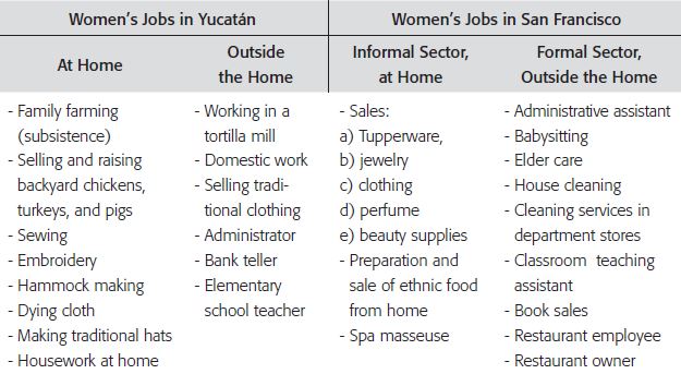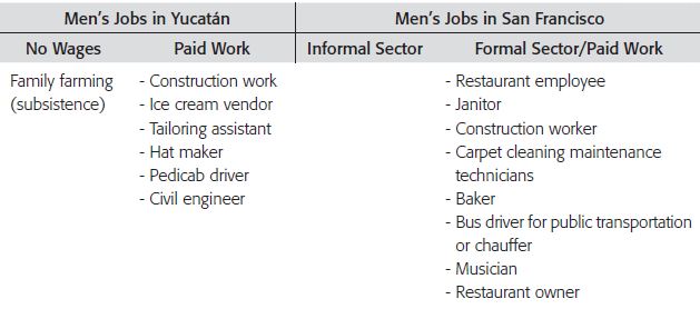 In this article, I discussed female-headed households. In contrast to married women, my findings indicate that single women with children work outside the home and are the main providers for their families, be they in Yucatán or in San Francisco. Like married male workers, who work two or three shifts to support their families, these women work two shifts and do informal work. Both are exploited and their work benefits a social and economic system based on labor and social inequality. Divorced and separated women make use of family networks: grandmothers, sisters, and aunts help them take care of their children in Yucatán or San Francisco.