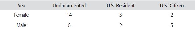 In the experience of Yucatec Maya women, the discussion on gender, work, and socioeconomic integration has taken place in a specific historical context. Between the 1990s and 2000s, Yucatec Maya migration into the United States increased significantly. This coincided with the feminization of migration movements around the world as well as with the feminization of Mexican migration (Galeana de Valadés, 2008). As stated above, ten out of eighteen women in this study arrived in the 1990s and four in the 2000s. Two arrived at the end of the 1980s and one in 1968. At present, 17 women are mothers; 2 are U.S. citizens, 3 are U.S. residents; and 14 remain undocumented. Among the latter, one is an undocumented 1.5-generation teenaged girl who arrived with her parents in 1999. See Table 3 to correlate migratory status among immigrant men and women at the time of my fieldwork.