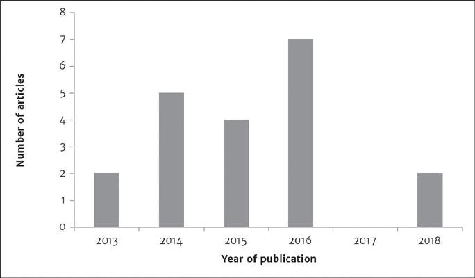 Figure 3.2 illustrates the number of articles that were included in the systematic review by year of publication. There was a growth in the number of articles on group parenting programs over the time, up to 2017, in particular, in 2016, with 7 articles published, that is, 35% of the articles of this review.