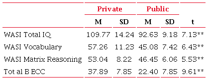 For a better characterization of the sample, Table 2.1.1 shows information on their intellectual and socioeconomic level (SEL), both of which were significantly higher in students from private schools.