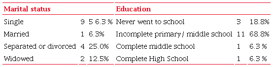 A previous study, the objective of which was to identify the socio-economic profile of the remaining residents of the CH addressed here, 30 people at the time (Vilela & Rocha, 2011), verified that 70% were aged between 51 and 70 years old, 60% were men, 50% presented sequelae from the disease, 60% were unable to read or write, and 45% of the residents were husbandman before being isolated.