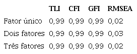 Por fim, para escolher o melhor modelo, eles foram comparados entre si por meio dos índices de ajustamento. O modelo com maior valor no CFI e menor valor no RMSEA é superior e possui melhor ajuste (Cheung & Rensvold, 2002). A Tabela 3.2 exibe, além dos índices CFI e RMSEA, os índices TLI e GFI para fins de comparação dos modelos.