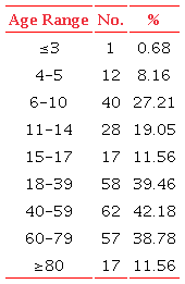 Regarding the contexts of the Stroop tasks used, the 147 studies were conducted with varied age groups, with emphasis on the 40-59 age group, which was present in 42.18% of the studies, followed by almost 40% with the age range of 18-39 years and 38.78% with the 60-69 age group. One study included a three-year or less sample (Table 1). In 14 of the studies, there was no information on the age range. In these cases, the mean age reported was considered (e.g., in one study, the mean age was 36.55 ± 11.34. Therefore, this study was computed to cover the age group of 18 to 39 years).