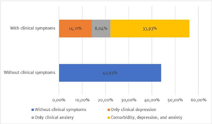This study aimed to assess the psychological impact of the COVID-19 pandemic, in terms of depression and anxiety symptoms, in postpartum women living in Brazil (up to 6 months after childbirth). The results confirmed the study’s hypothesis, showing that approximately half of the postpartum women in the sample experienced clinically significant levels of depressive symptomatology (47.4%) and moderate to severe levels of generalized anxiety symptomatology (41.8%). In addition, there was a high comorbidity of depression and anxiety symptoms present in about a third of the participants.