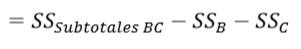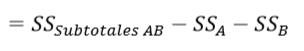 Para calcular la suma de cuadrados de las interacciones de dos factores se determinó de acuerdo a las expresiones matemáticas siguientes: