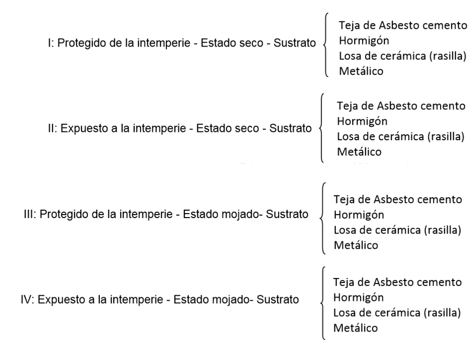 Sustrato: Compuesto por cuatro niveles cualitativos que comprenden cuatro sustratos: asbesto cemento, hormigón, losa de cerámica roja (rasilla) y metal.