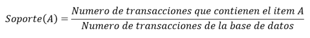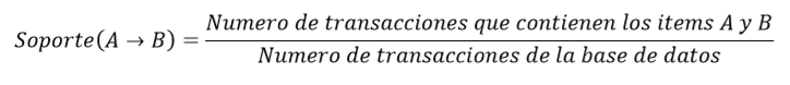 Para obtener el soporte de una regla de decisión, por ejemplos , se obtiene con la siguiente ecuación
